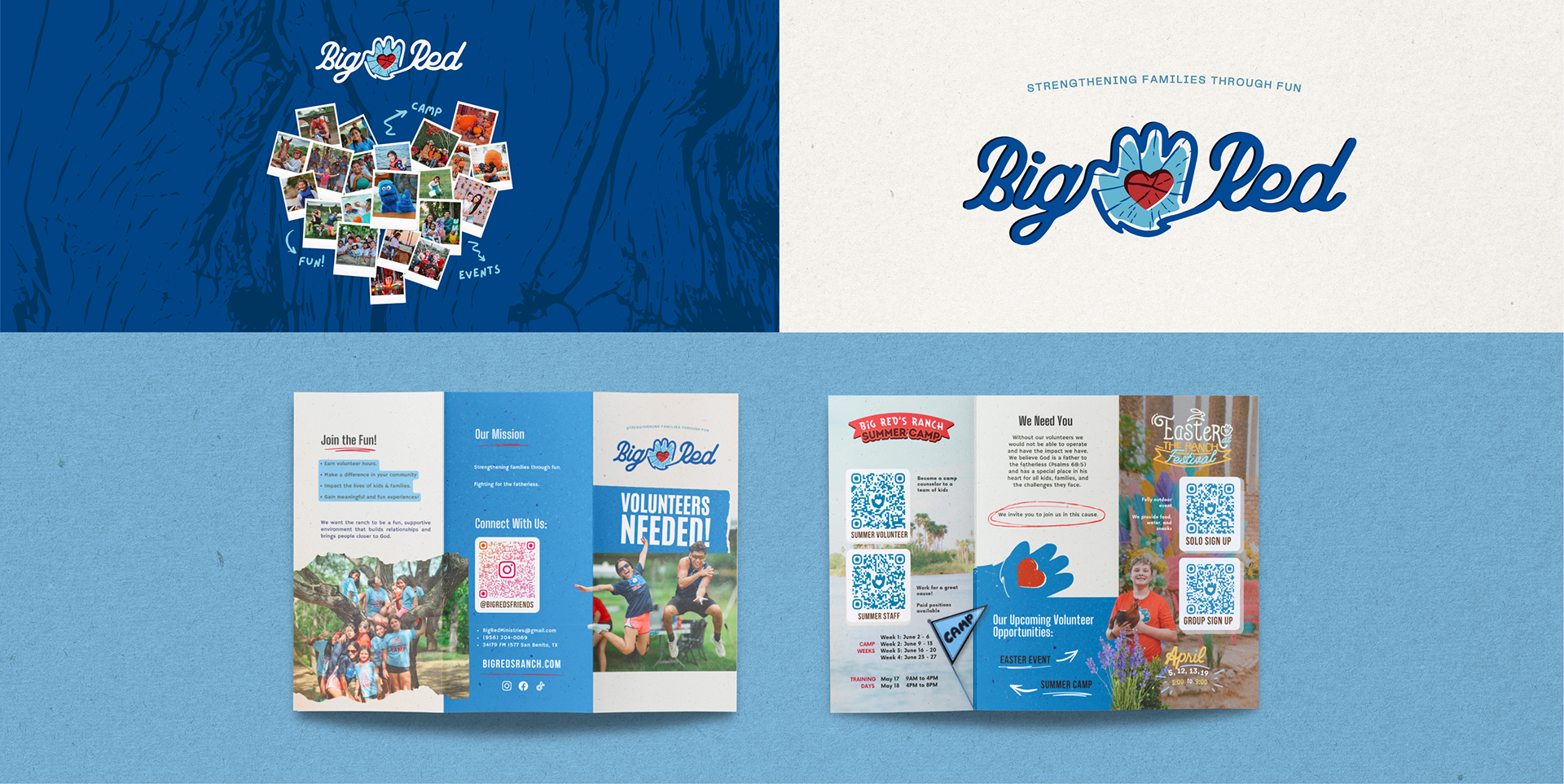 Big Red’s Ranch is a family-oriented nonprofit that hosts seasonal events and kids camps designed to inspire community, creativity, and outdoor adventure. My role as a graphic designer was to evolve the existing brand identity into a flexible, unified system that captured the ranch’s playful, family-friendly spirit across merchandise, signage, print, and digital media.