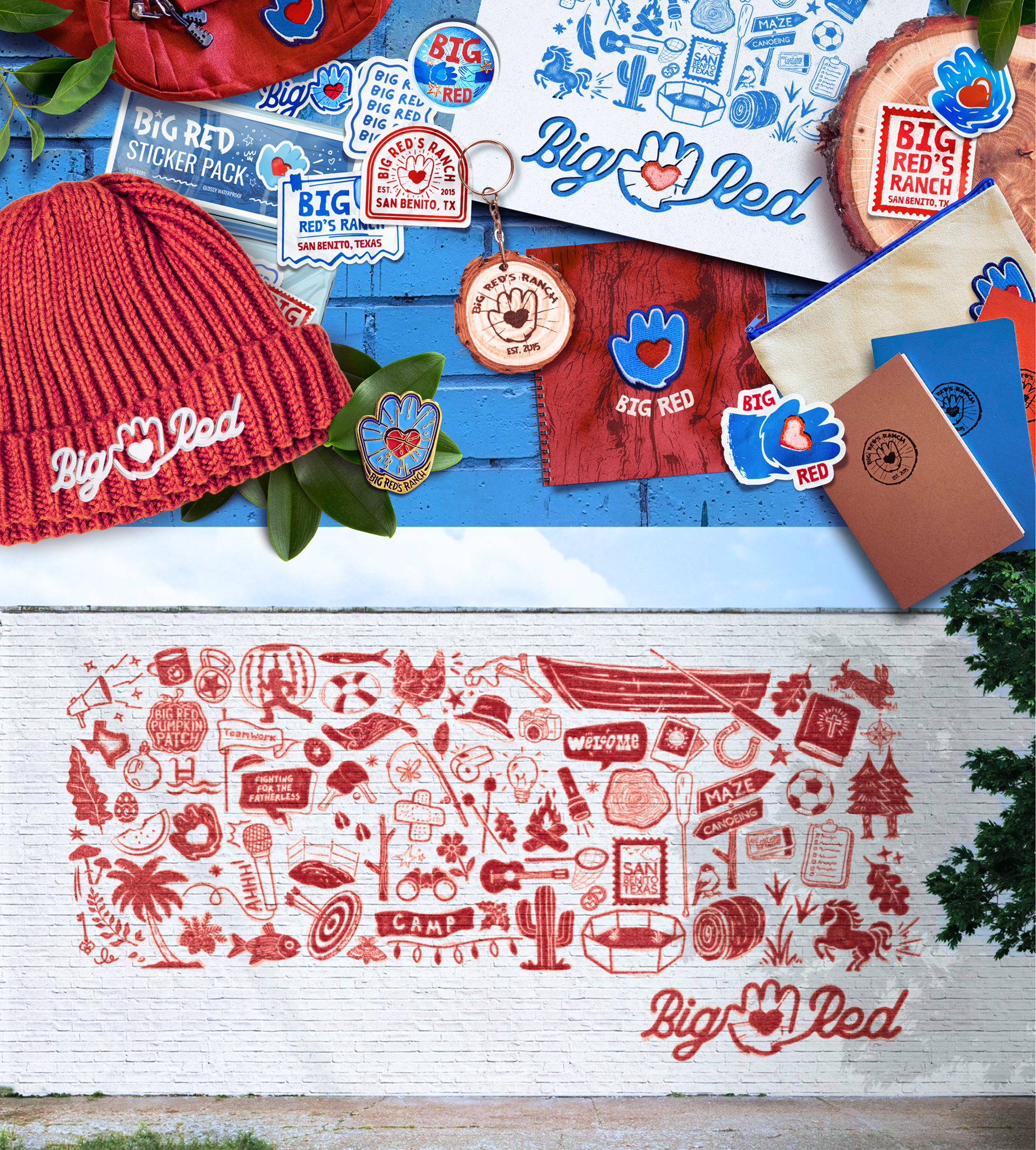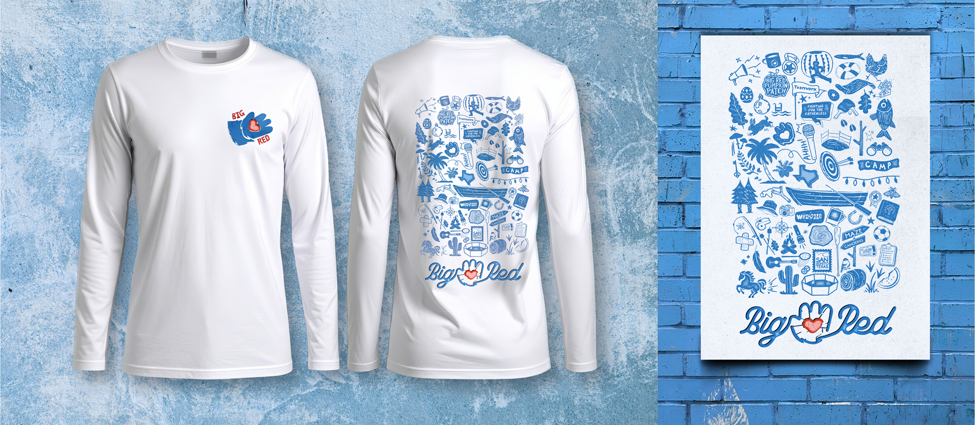 I refreshed the Big Red’s Ranch logo system and developed a expanded visual library of icons and submarks inspired by camp life, family fun, and the ranch’s spirit of adventure. Each icon was designed to work both individually and as part of a pattern system, allowing the visuals to be mixed and matched across merchandise, print materials, and digital content. The goal was to create a design language that felt bright, friendly, and full of energy, something kids and adults alike could connect with and remember.