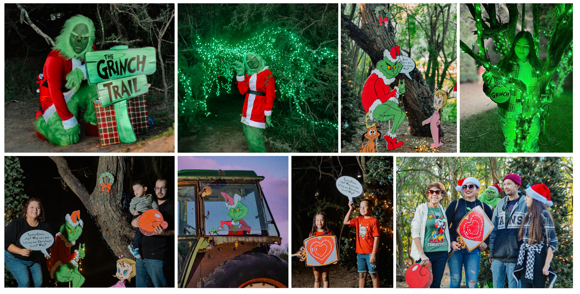 The Grinch Trail featured photo ops and handmade props inspired by Dr. Seuss’s Christmas classic. The trail encouraged guests to take fun, lighthearted photos with the Grinch and his mischievous scenes.